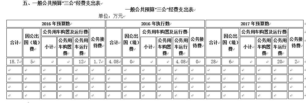 2017年“三公”經(jīng)費(fèi)預(yù)算比2016年預(yù)算經(jīng)費(fèi)執(zhí)行數(shù)20.7比增加 7.3萬元。其中:因公出國(境)費(fèi)減少1.95萬元;公務(wù)用車購置費(fèi)增加0萬元,;公務(wù)用車運(yùn)行費(fèi)增加7.25萬元,主要原因是采編記者下鄉(xiāng)采訪任務(wù)加大,公務(wù)車運(yùn)行費(fèi)用加大,三輛公務(wù)用車都已老舊,養(yǎng)護(hù)費(fèi)用也增大;公務(wù)接待費(fèi)與2016年持平。