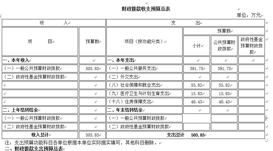 一、財(cái)政撥款收支預(yù)算總表