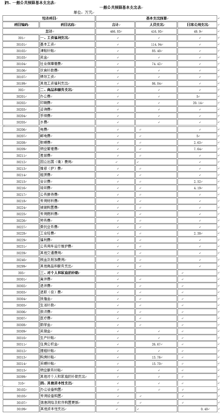 四、一般公共預(yù)算基本支出表