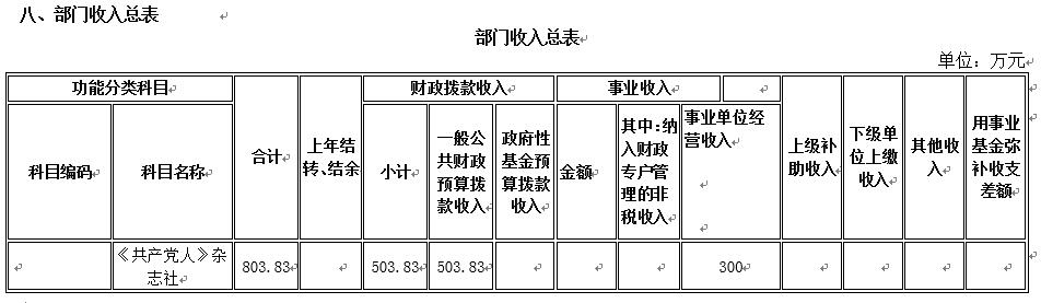 按照全口徑預(yù)算的原則,《共產(chǎn)黨人》雜志社2017年所有收入和支出均納入部門預(yù)算管理。收入總預(yù)算 803.83 萬元,支出總預(yù)算 803.83 萬元。
