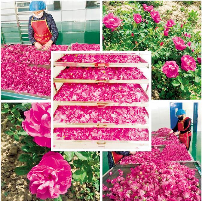 惠農(nóng)區(qū)以工促農(nóng)大力發(fā)展農(nóng)產(chǎn)品加工業(yè),采摘好的玫瑰花將被制作成鮮花餅、玫瑰精油等產(chǎn)品。