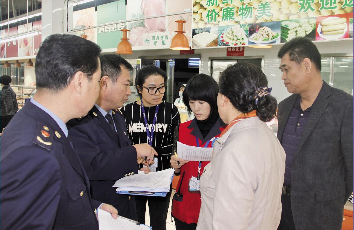 市場監(jiān)管人員檢查超市食品安全索票索證情況