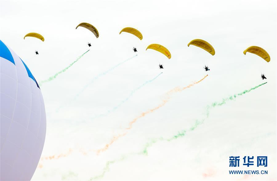 當(dāng)日,寧夏吳忠市鹽池縣舉行2020年“航空嘉年華”系列活動,開幕式活動現(xiàn)場有動力傘、旋翼機(jī)、動力三角翼等飛行表演,讓觀眾領(lǐng)略航空運(yùn)動的魅力。 新華社記者 楊植森 攝