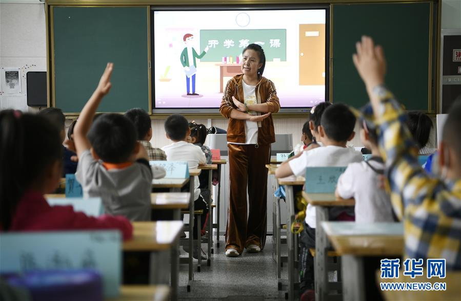 9月1日,銀川市興慶區(qū)回民第二小學(xué)學(xué)生在上開學(xué)第一課。當(dāng)日,寧夏銀川市各中小學(xué)、幼兒園正式迎來新學(xué)期。 新華社記者 王鵬 攝