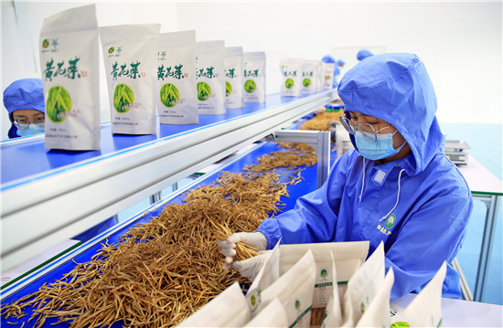 8月18日,工人在鹽池縣黃花產(chǎn)業(yè)融合發(fā)展園加工黃花菜。該園區(qū)全面投產(chǎn)后,將實(shí)現(xiàn)黃花菜一二三產(chǎn)業(yè)融合發(fā)展,并逐步形成輻射西北地區(qū)乃至全國的黃花菜加工、研發(fā)、銷售中心區(qū)域。谷剛 攝