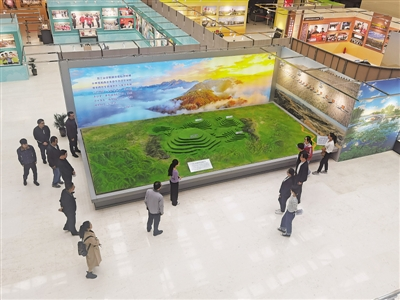 展館內(nèi)有展臺(tái)展品和沙盤模型,圖為反映賀蘭山環(huán)境治理的沙盤。