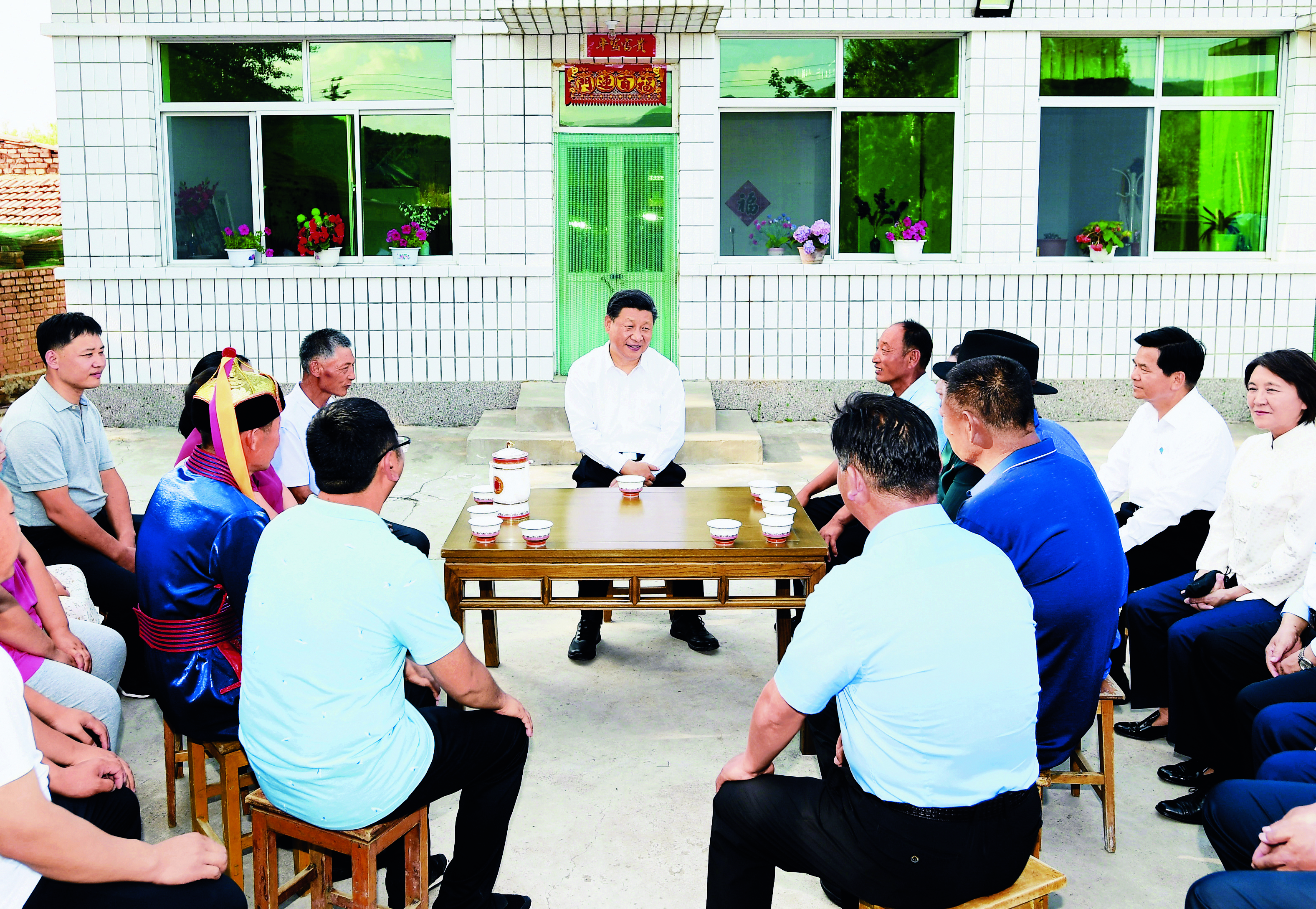 2019年7月15日下午,習(xí)近平在赤峰市喀喇沁旗河南街道馬鞍山村村民張國利家,同基層干部群眾代表座談交流。 新華社記者 謝環(huán)馳/攝