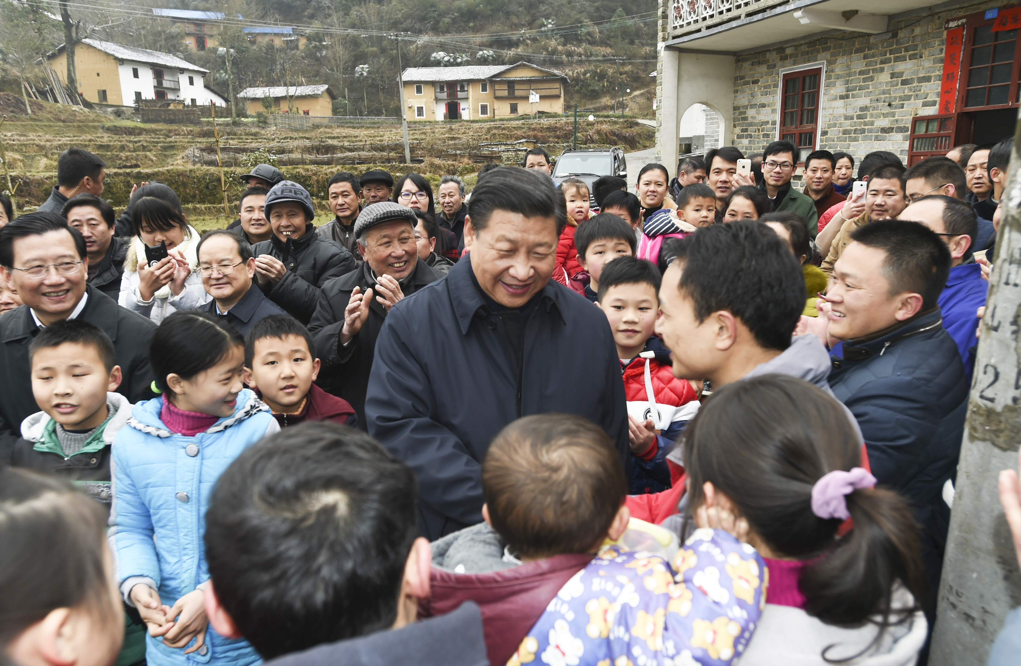 2016年2月2日,中共中央總書記、國家主席、中央軍委主席習(xí)近平在井岡山市神山村給鄉(xiāng)親們拜年,祝鄉(xiāng)親們生活幸福、猴年吉祥。 新華社記者 謝環(huán)馳/攝