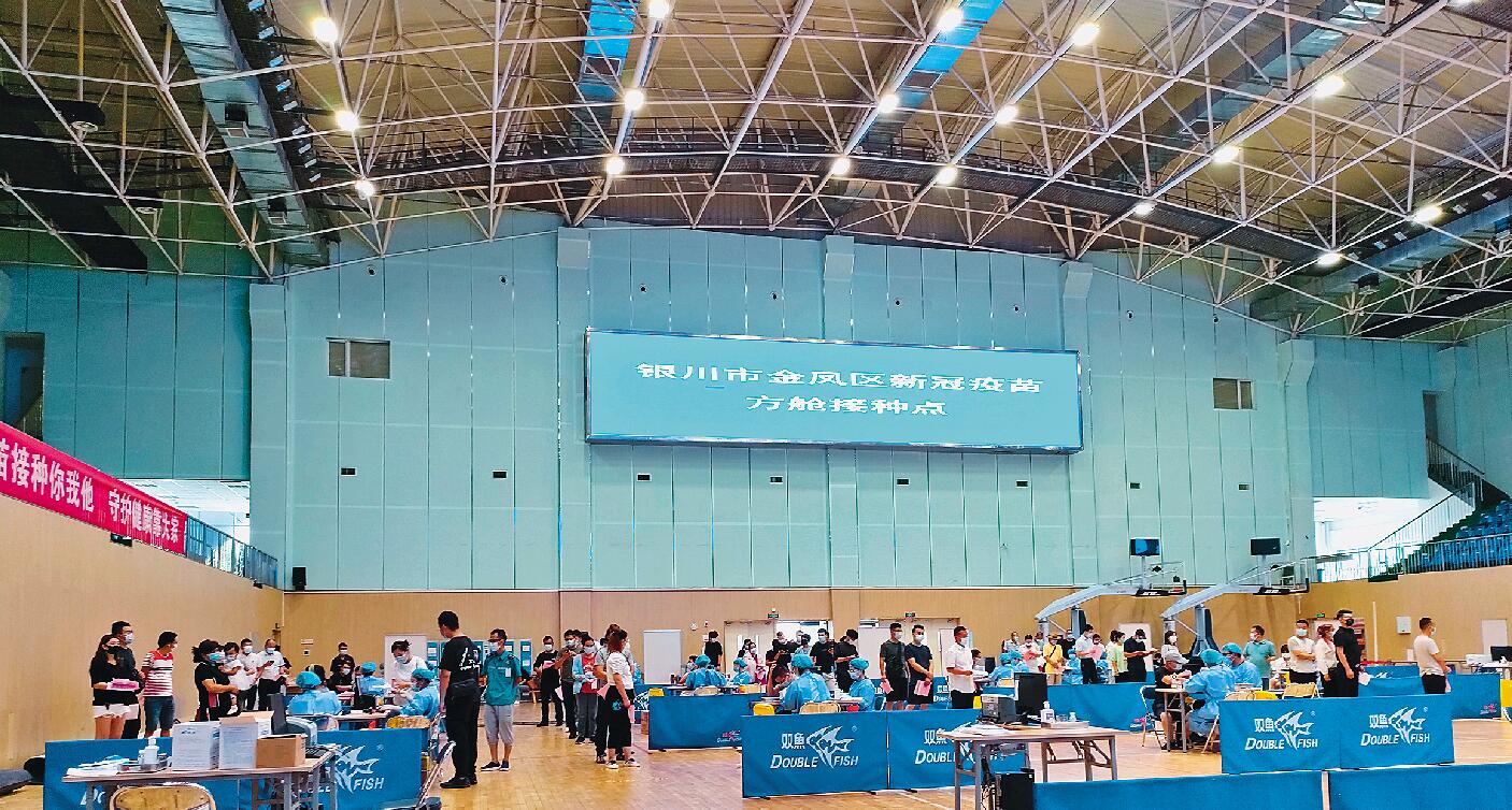 為市民開(kāi)展嚴(yán)格有序的新冠疫苗接種工作,圖為銀川市金鳳區(qū)新冠疫苗方艙接種點(diǎn)(親水體育館)。