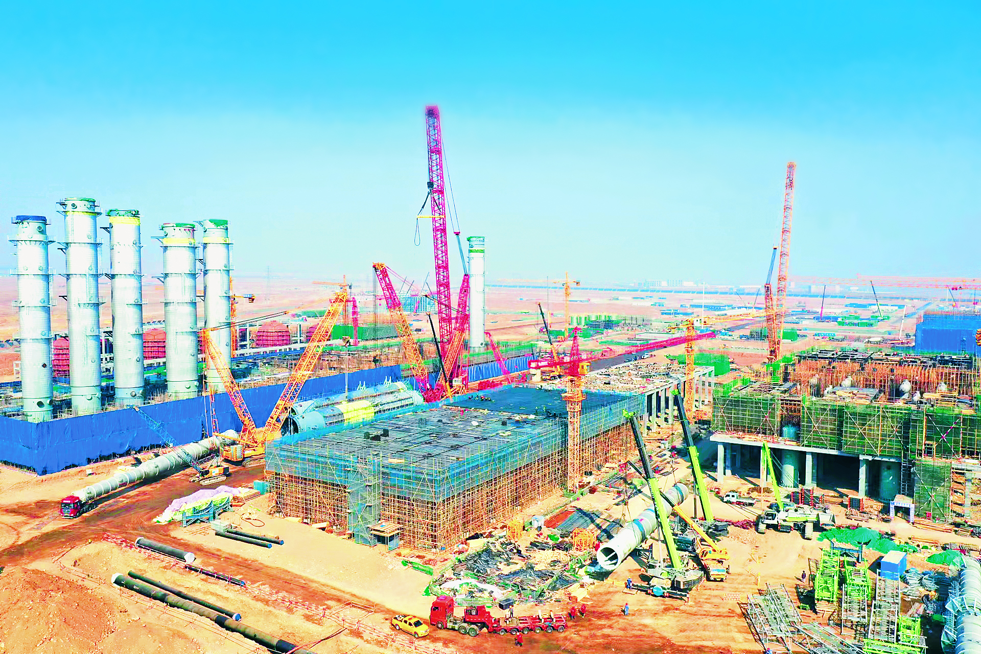 以重大項目建設(shè)助推高質(zhì)量發(fā)展。圖為石嘴山市惠農(nóng)區(qū)東方希望集團(tuán)寧夏晶體新能源材料有限公司多晶硅項目正加快建設(shè)。??閆院平/攝??
