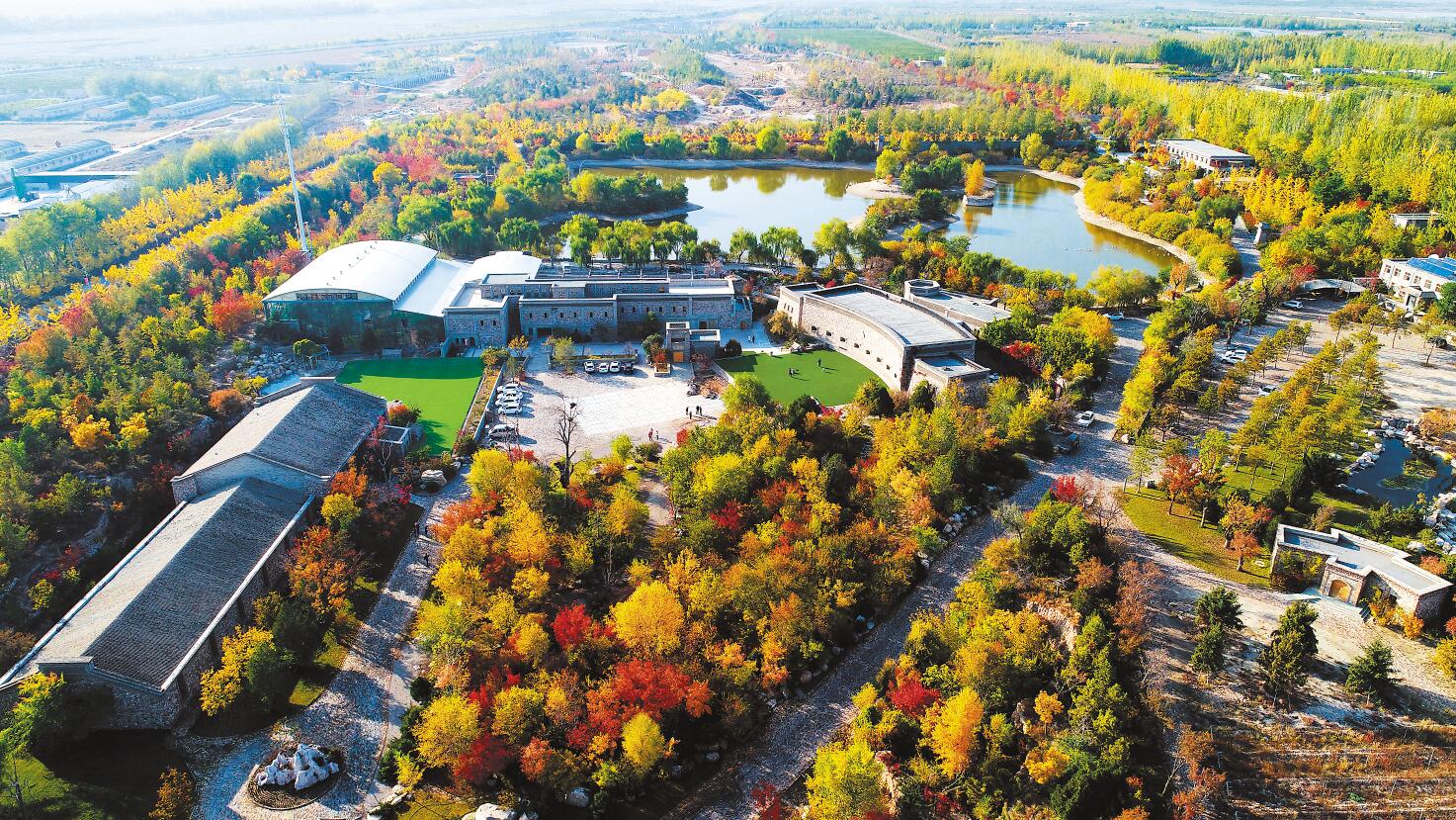 2008年,在自治區(qū)黨委、政府的支持下,袁輝帶領企業(yè)在戈壁灘上種下了第一片葡萄園,秉持“生態(tài)、節(jié)能、環(huán)保”理念,通過生態(tài)修復、因地制宜在廢棄砂石坑中建起了志輝源石葡萄酒莊。企業(yè)始終踐行“綠水青山就是金山銀山”的發(fā)展理念,在賀蘭山下的荒灘上種植生態(tài)林,改善周邊生態(tài)環(huán)境,利用廢棄礦區(qū)建設酒莊、公園,使這里由昔日的風沙肆虐,變成了如今生機盎然的綠洲。目前,園區(qū)內(nèi)種植生態(tài)林8000畝,生態(tài)修復廢棄礦區(qū)6000畝,種植釀酒葡萄3000畝、經(jīng)果林1000畝,各類植物達300余萬株。2018年,志輝源石葡萄酒莊榮獲聯(lián)合國人居署亞洲都市城鄉(xiāng)環(huán)境治理獎。