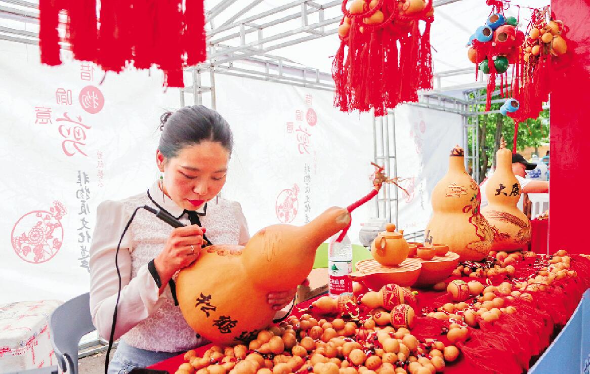 葫蘆雕刻不僅有巧奪天工的工藝之美,更是傳承民族特色和中華傳統(tǒng)文化的載體。圖為石嘴山市大武口區(qū)龍泉村葫蘆雕刻傳承人正在展示葫蘆雕刻技藝。