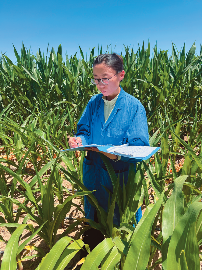 關雅靜在玉米地里進行育種實驗。