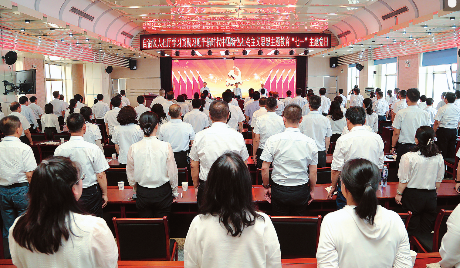 打好思想教育“主動戰(zhàn)”,厚植精神文明底色。圖為自治區(qū)人社廳開展“七一”主題黨日活動。