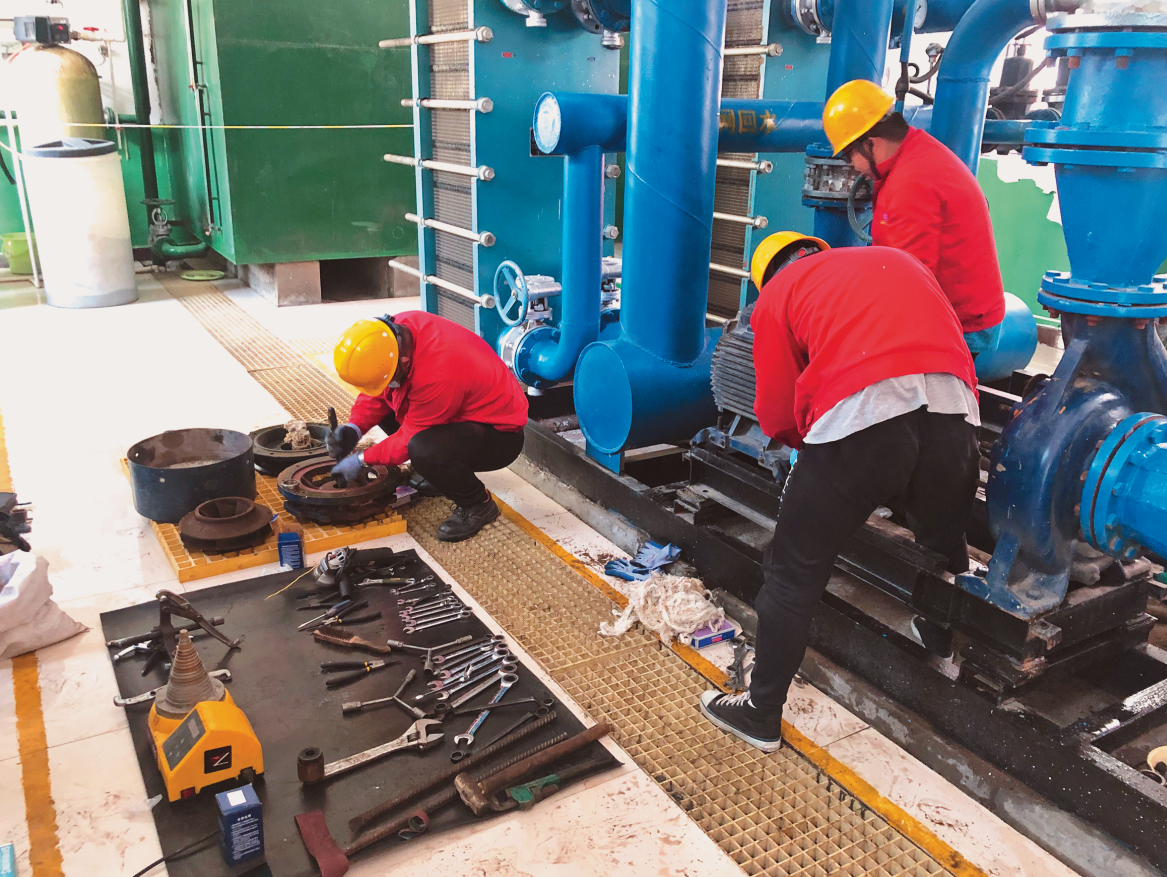 熱力公司對(duì)供熱設(shè)施進(jìn)行檢修。