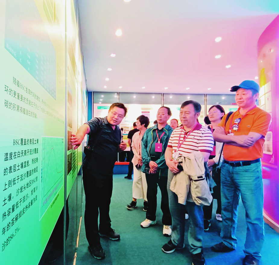 全國黨刊全媒體記者在中國科學院西北生態(tài)環(huán)境資源研究院沙坡頭沙漠研究試驗站采訪。 李永紅/攝