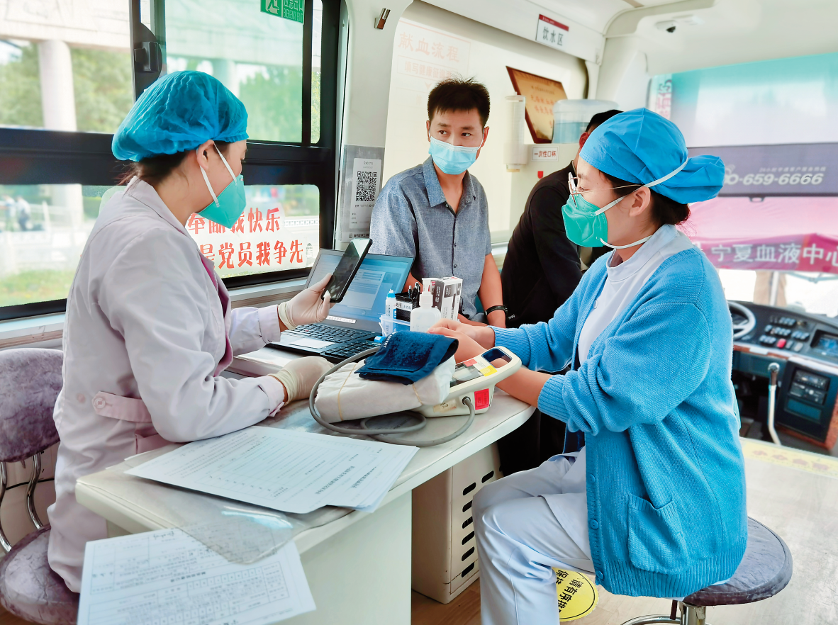 寧夏醫(yī)科大學(xué)總醫(yī)院組織青年醫(yī)務(wù)工作者無(wú)償獻(xiàn)血?!幭尼t(yī)科大學(xué)總醫(yī)院供圖
