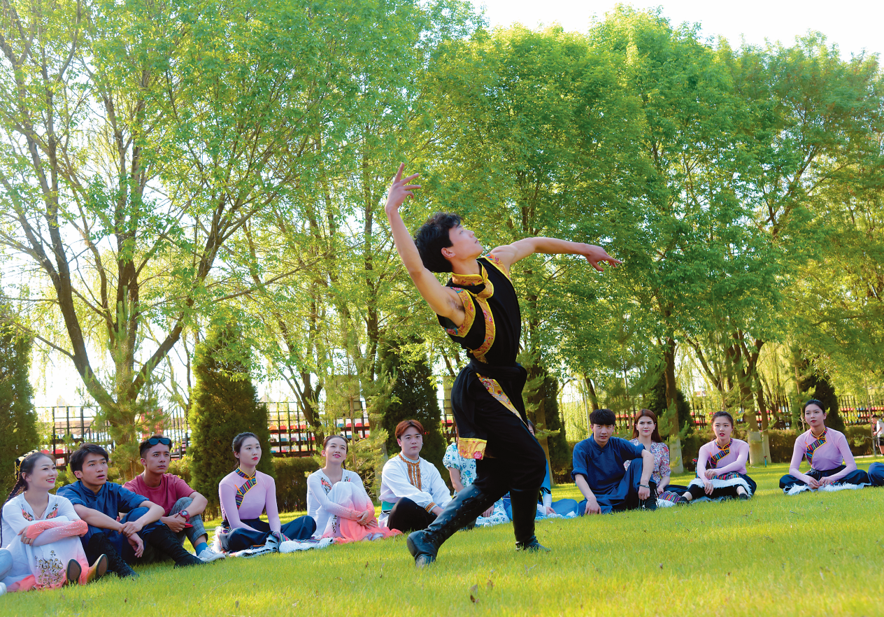 著眼基層、重在日常、融入生活,厚植鑄牢中華民族共同體意識工作的群眾基礎(chǔ)。圖為北方民族大學(xué)學(xué)生在校園表演民族舞蹈。 鐘培源/攝
