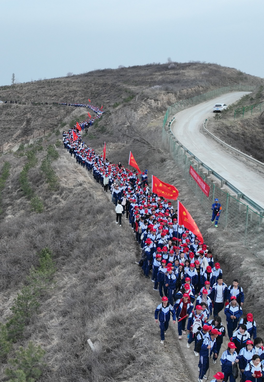 最初的幾年,這趟百里徒步面臨的最大困難和挑戰(zhàn)是學(xué)生體能跟不上。108里路全是土路和沙石路,蜿蜒曲折不好走,清明下雨時(shí)泥濘濕滑,給安全和后勤保障帶來極大挑戰(zhàn)。學(xué)??紤]到初中部的學(xué)生年齡小吃不消,就與當(dāng)?shù)貙W(xué)校聯(lián)系對(duì)接共同舉行一次師生聯(lián)誼活動(dòng),晚上和附近村民及當(dāng)?shù)貙W(xué)生家長聯(lián)系讓孩子們住在農(nóng)戶家里體驗(yàn)一下生活,有些學(xué)生還要行走10多里路才能到住戶家,第二天再返回。后來,這來回108里路就變成了高一、初一新生革命傳統(tǒng)教育和愛國主義教育的組成部分。108里路,固原二中和弘文中學(xué)的學(xué)生們?cè)诰拺延⒘液屯讲叫凶咧袀鞒屑t色基因、堅(jiān)定理想信念、汲取奮進(jìn)力量。29年來,學(xué)校不斷從這條路上尋找、挖掘育人元素,把崎嶇的山道變成鮮活的教材,把一路所觀所行所感轉(zhuǎn)化為課堂上最好的情景素材。29年來,參與這項(xiàng)活動(dòng)的人越來越多,活動(dòng)規(guī)模越來越大,內(nèi)涵越來越豐富,感召力和吸引力越來越強(qiáng),社會(huì)關(guān)注度也越來越高。