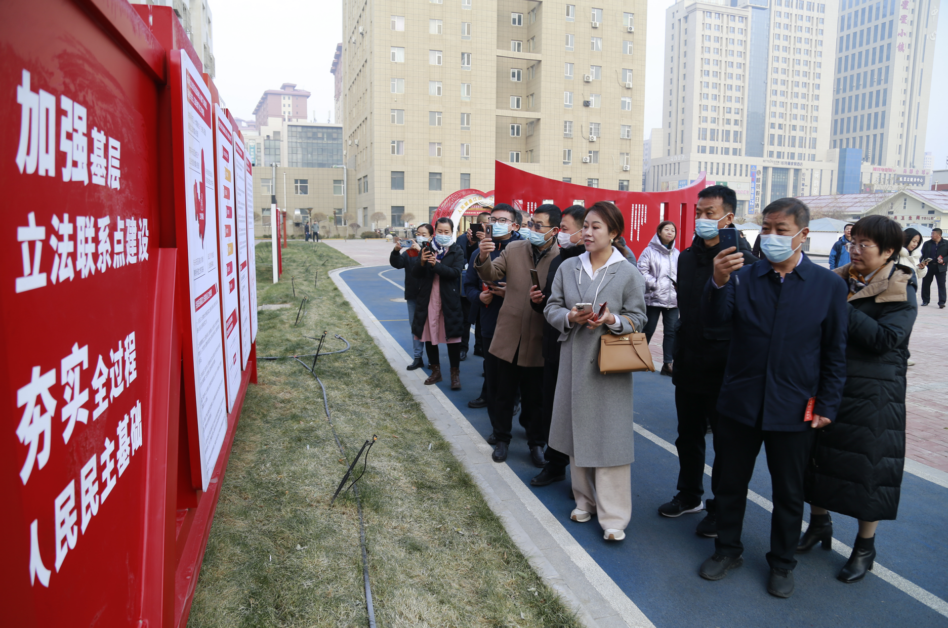 自治區(qū)基層立法聯(lián)系點規(guī)范化建設推進會與會人員觀摩銀川市興慶區(qū)人大廣場,了解基層信息采集情況。 李剛/攝