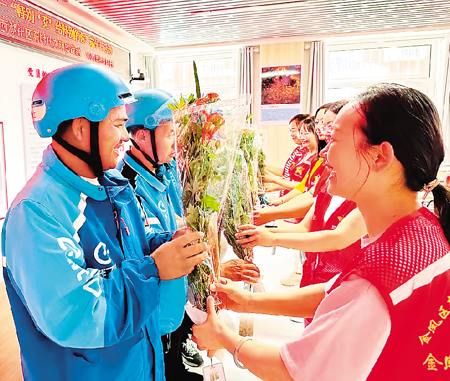 銀川市金鳳區(qū)賀蘭山中路街道西湖社區(qū)邀請外賣小哥共度端午佳節(jié),提升新就業(yè)群體的獲得感、幸福感、歸屬感?!∽灾螀^(qū)黨委社會(huì)工作部供圖