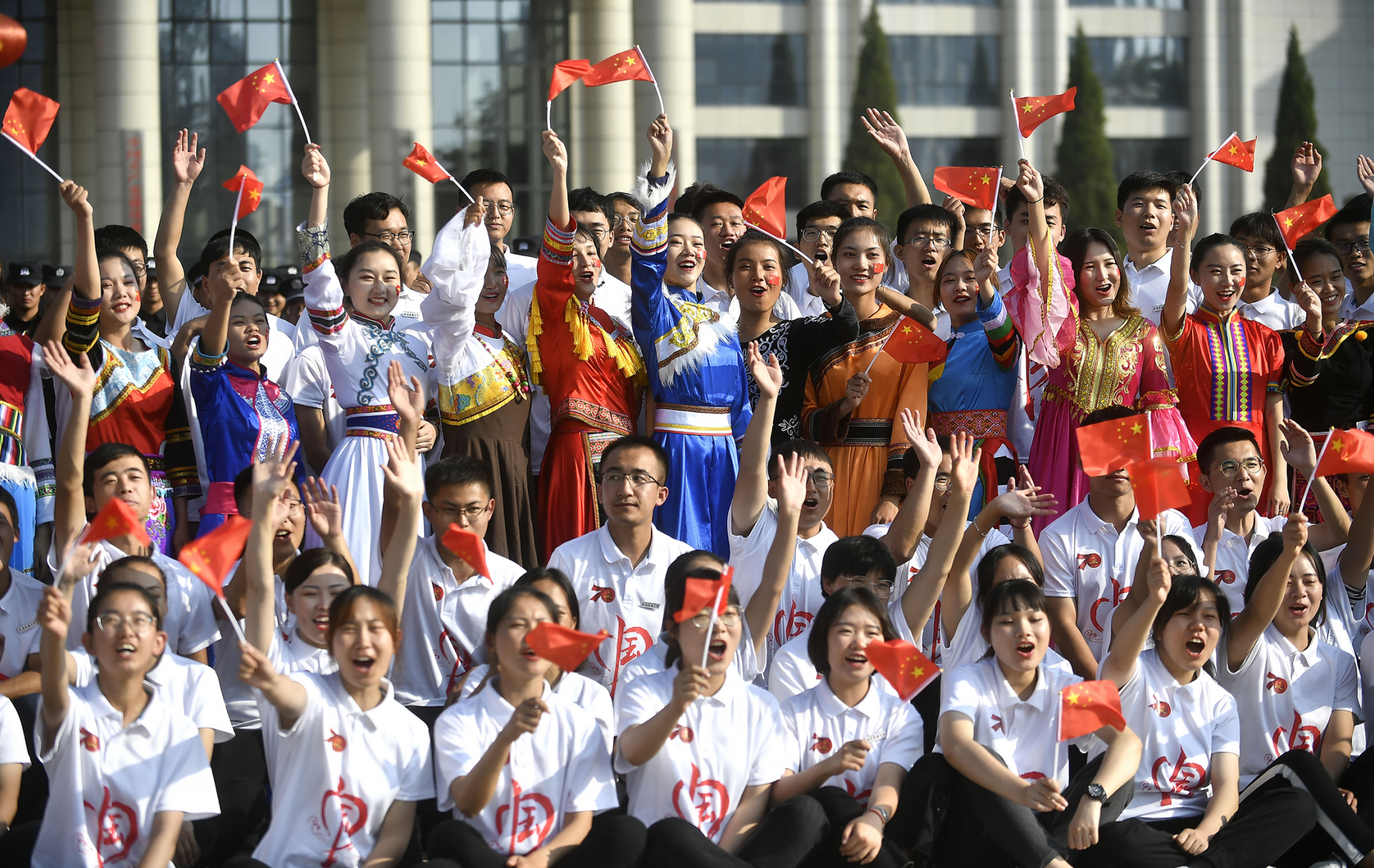 湖城兒女心連心、手牽手、肩并肩,凝心聚力共建大美銀川幸福家園。李靖/攝
