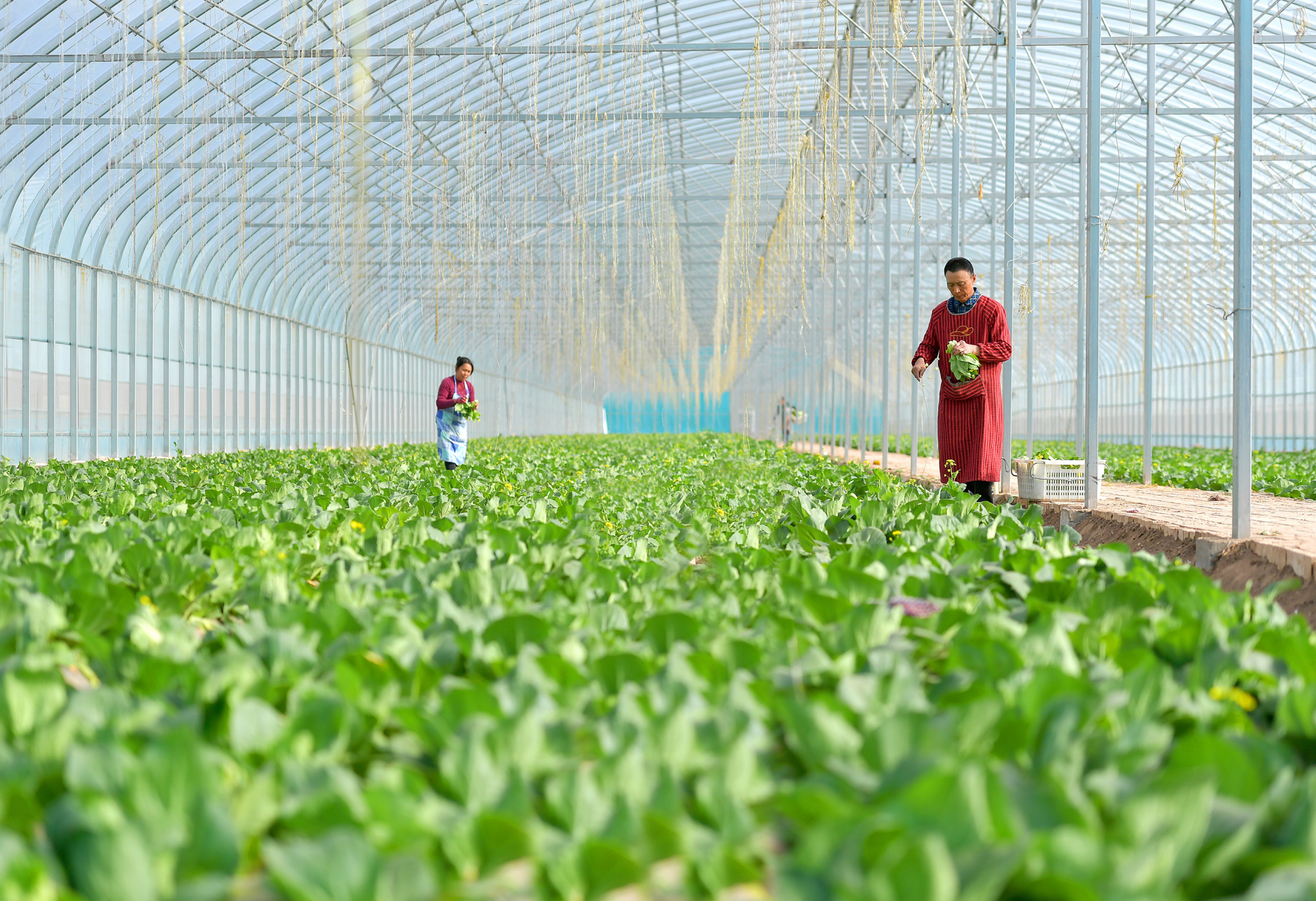 固原市大力發(fā)展冷涼蔬菜產(chǎn)業(yè),菜農(nóng)在現(xiàn)代化日光大棚種出幸福生活。 固原市委辦公室供圖
