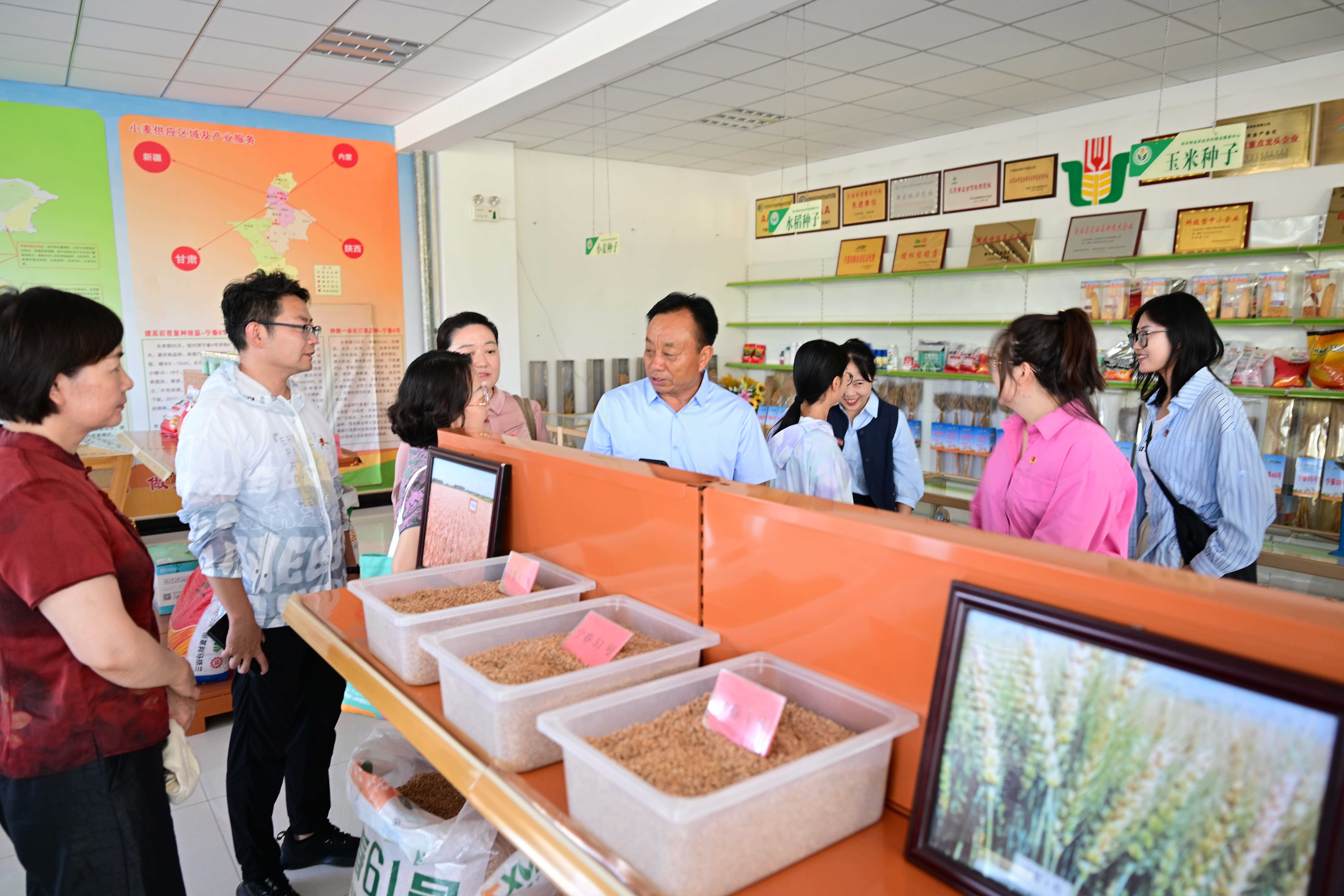 隨后,一行人來到寧夏科豐種業(yè)有限公司種子基地開展采訪調(diào)研。采訪了退休后扎根種子基地10年,持續(xù)繁育優(yōu)良水稻品種的原寧夏農(nóng)林科學(xué)院農(nóng)作物研究所所長、寧夏農(nóng)作物制種產(chǎn)業(yè)首席專家王興盛。大家一致認(rèn)為,刊社黨總支要繼續(xù)加強(qiáng)與企業(yè)黨組織的互動交流,提高服務(wù)意識,為基層黨組織做好政策解讀。同時,進(jìn)一步發(fā)揮黨的思想理論宣傳主力軍、主陣地作用,及時宣傳企業(yè)黨組織在引領(lǐng)行業(yè)發(fā)展方面取得的好經(jīng)驗好做法,進(jìn)一步擴(kuò)大黨刊的社會影響力和輿論引導(dǎo)力。
