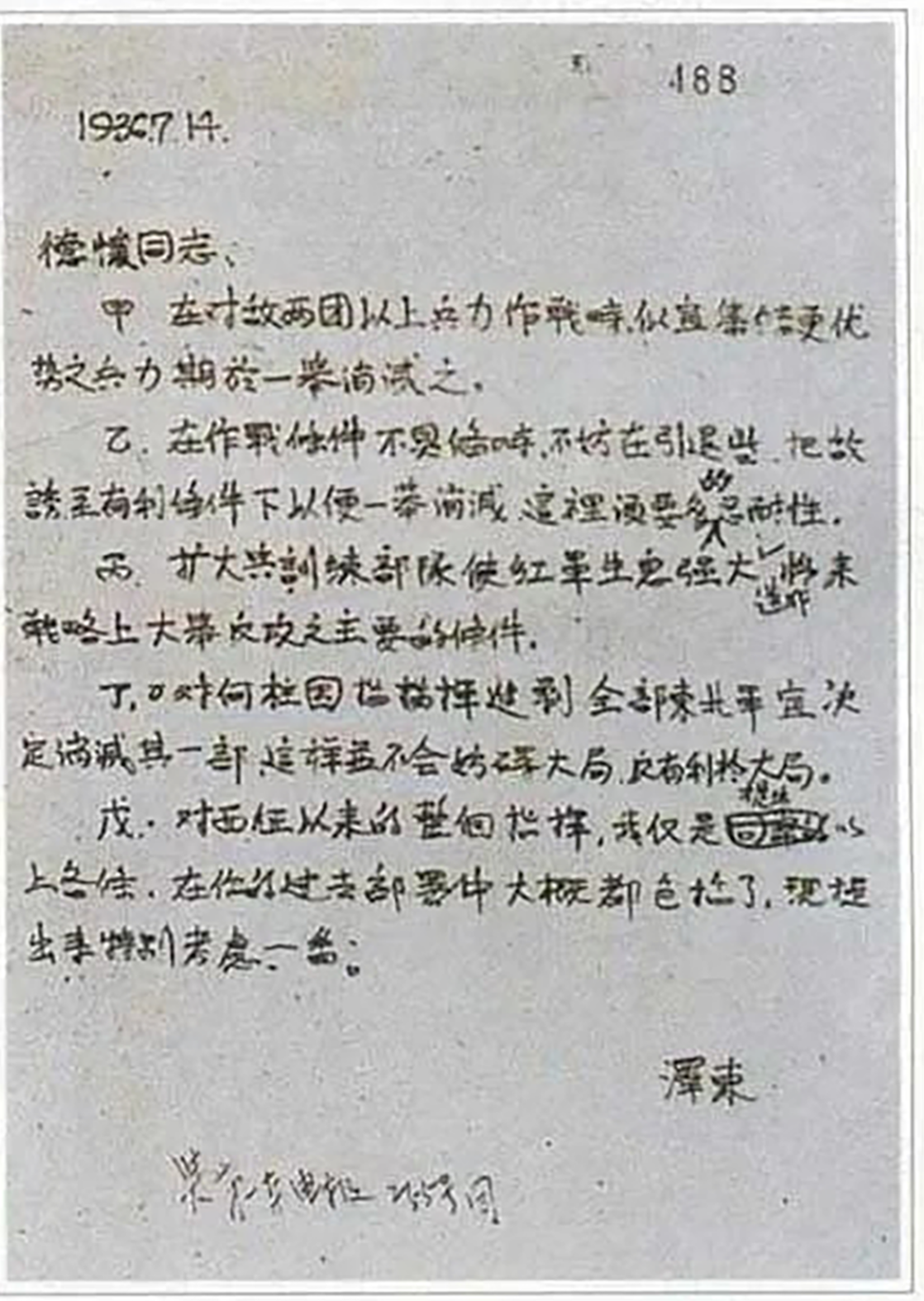 毛澤東為西征作戰(zhàn)給彭德懷的電報(bào)。 資料圖片