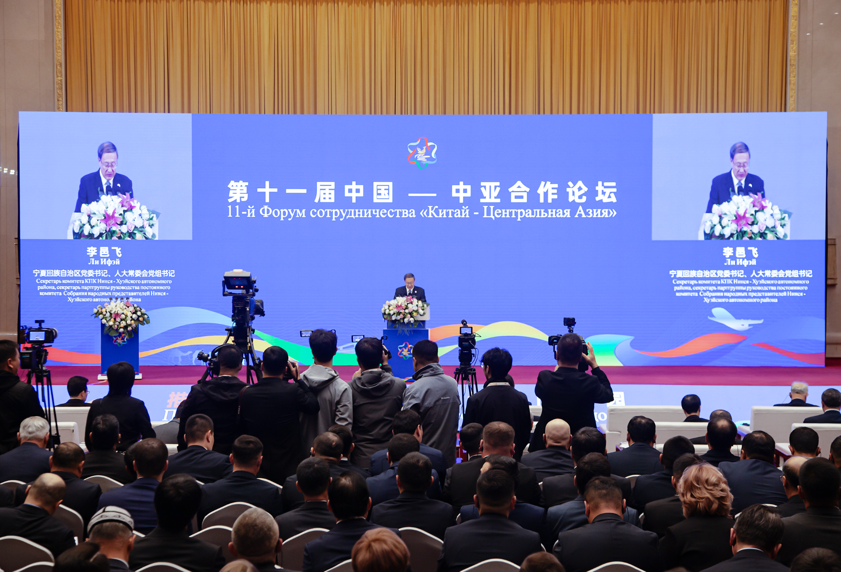 第十一屆中國—中亞合作論壇開幕式上,寧夏回族自治區(qū)黨委書記、人大常委會(huì)黨組書記李邑飛致歡迎辭。 汪亞飛/攝