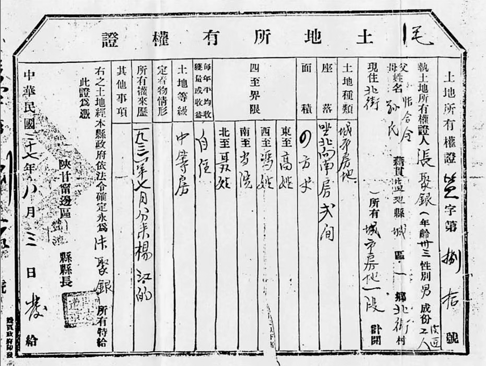 鹽池縣政府頒發(fā)的土地所有權(quán)證。資料圖片