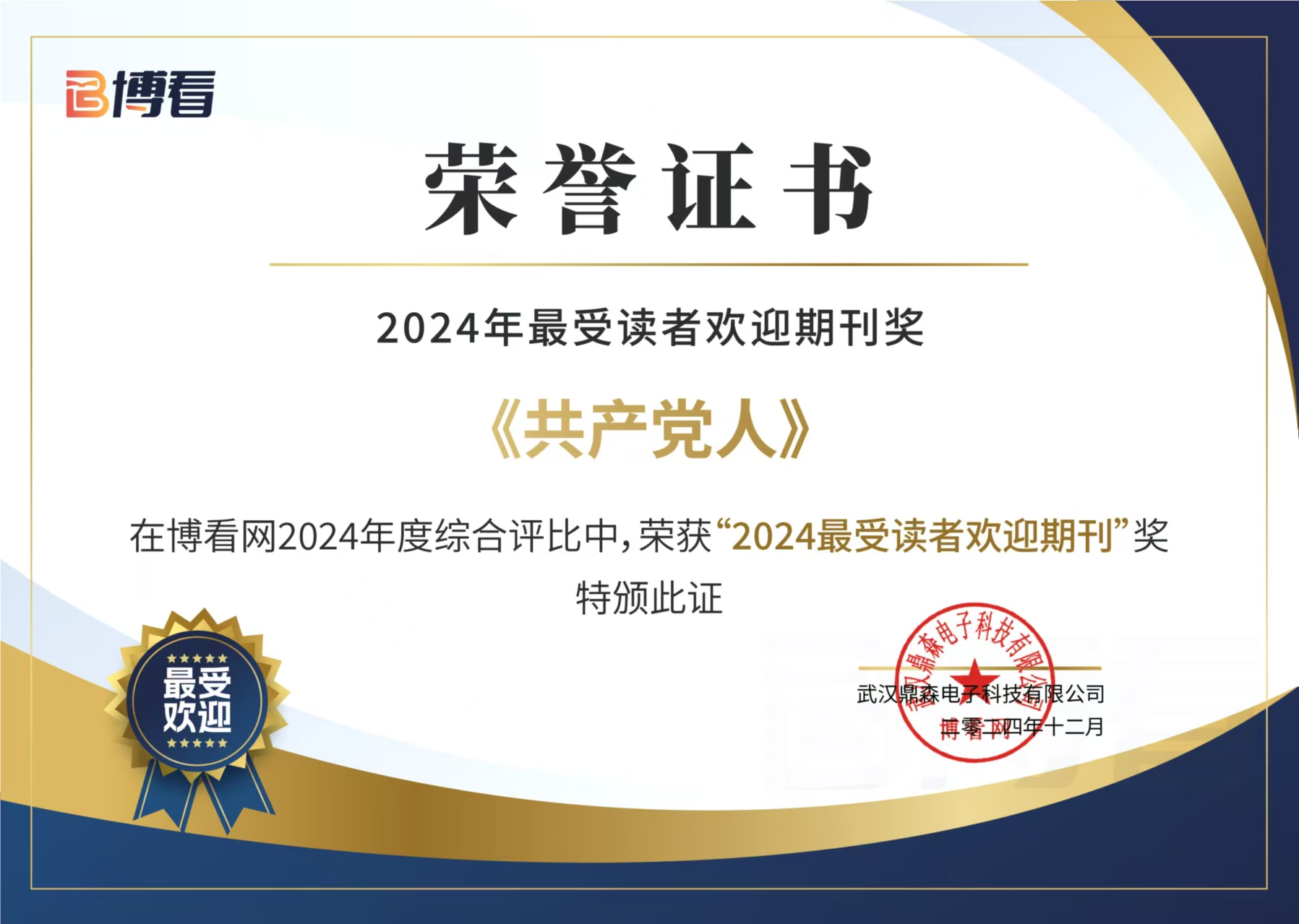【喜訊】《共產黨人》榮獲博看網“2024年度最受讀者歡迎期刊”獎