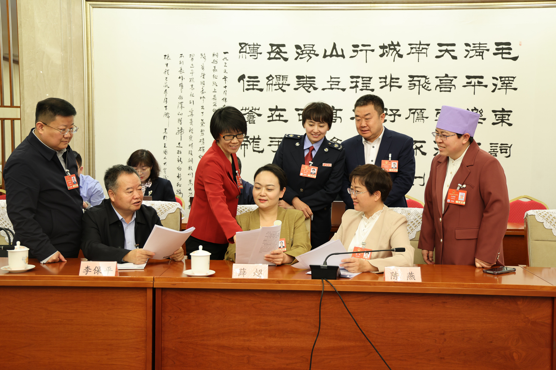 十四屆全國人大三次會議期間,在寧全國人大代表討論政府工作報告。 霍慶國/攝