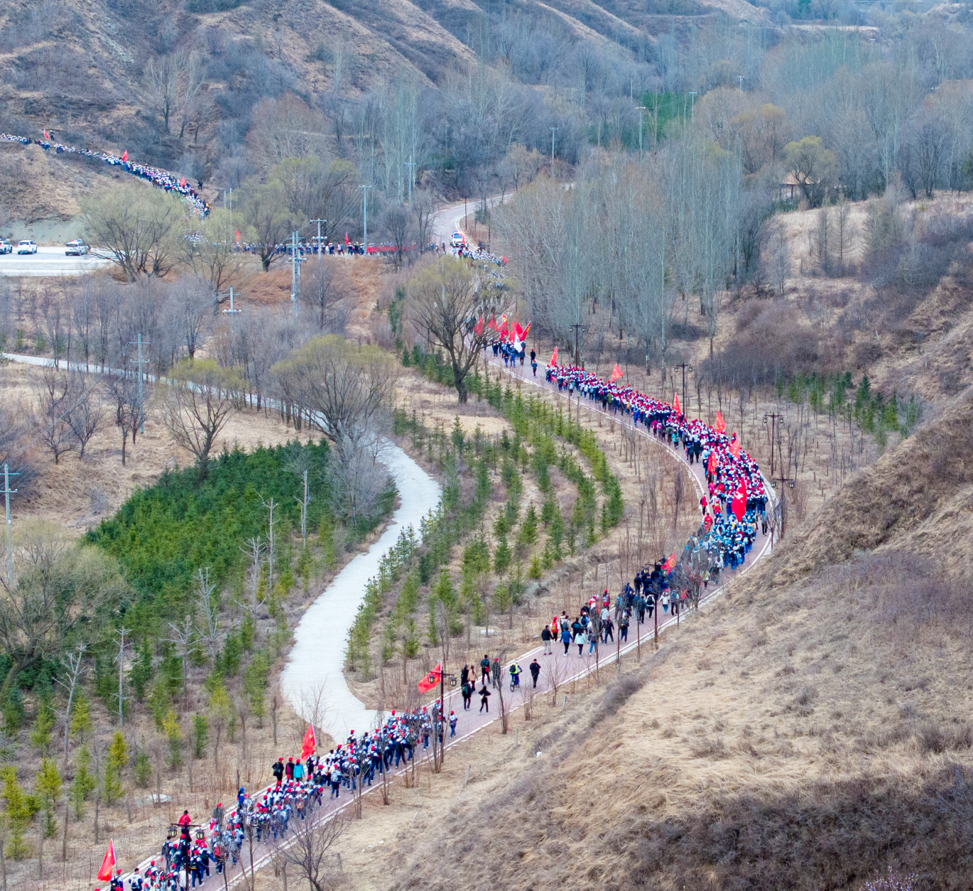 “百里徒步任山河祭英烈”活動由固原市第二中學、弘文中學連續(xù)組織開展了30年,成為大思政課優(yōu)秀案例?!」淘行侣剛髅街行墓﹫D
