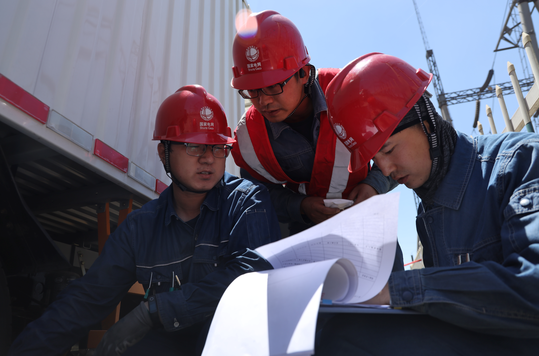 孫尚鵬(左一)和他的團(tuán)隊(duì)查看交流耐壓試驗(yàn)數(shù)據(jù)。 化汝/攝
