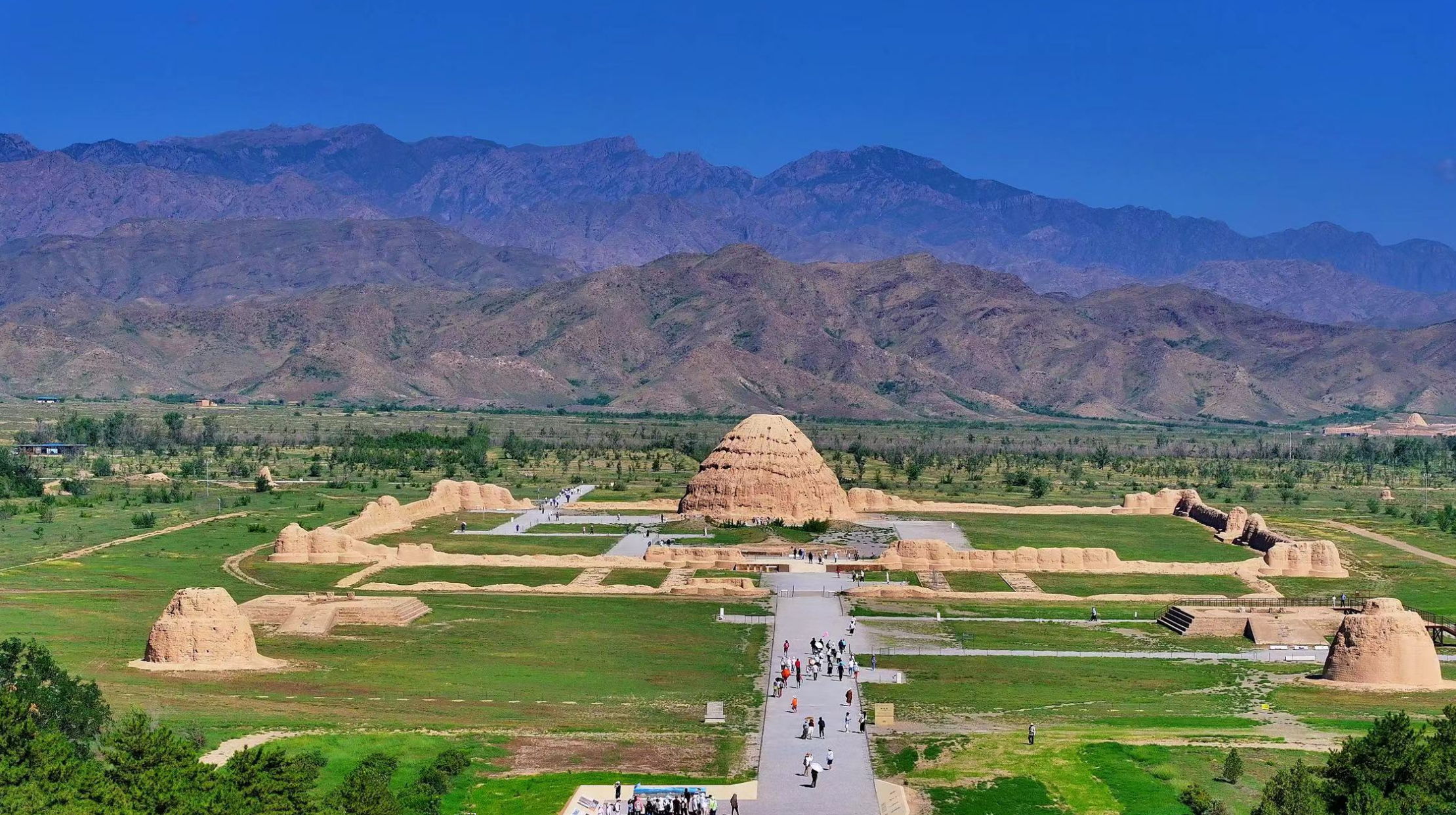 西夏陵氣勢(shì)恢宏的陵寢建筑,與峰巒疊嶂的賀蘭山勢(shì)共同形成了雄偉壯麗的陵區(qū)景觀。