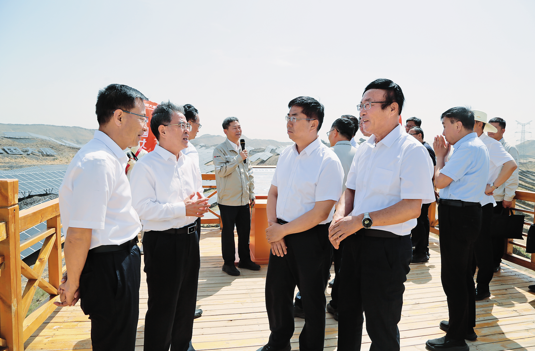自治區(qū)與中衛(wèi)市兩級人大常委會黨組聯(lián)合開展理論學習中心組學習。圖為現(xiàn)場考察大唐中衛(wèi)云基地數(shù)據(jù)中心綠電供應項目。 自治區(qū)人大常委會辦公廳供圖