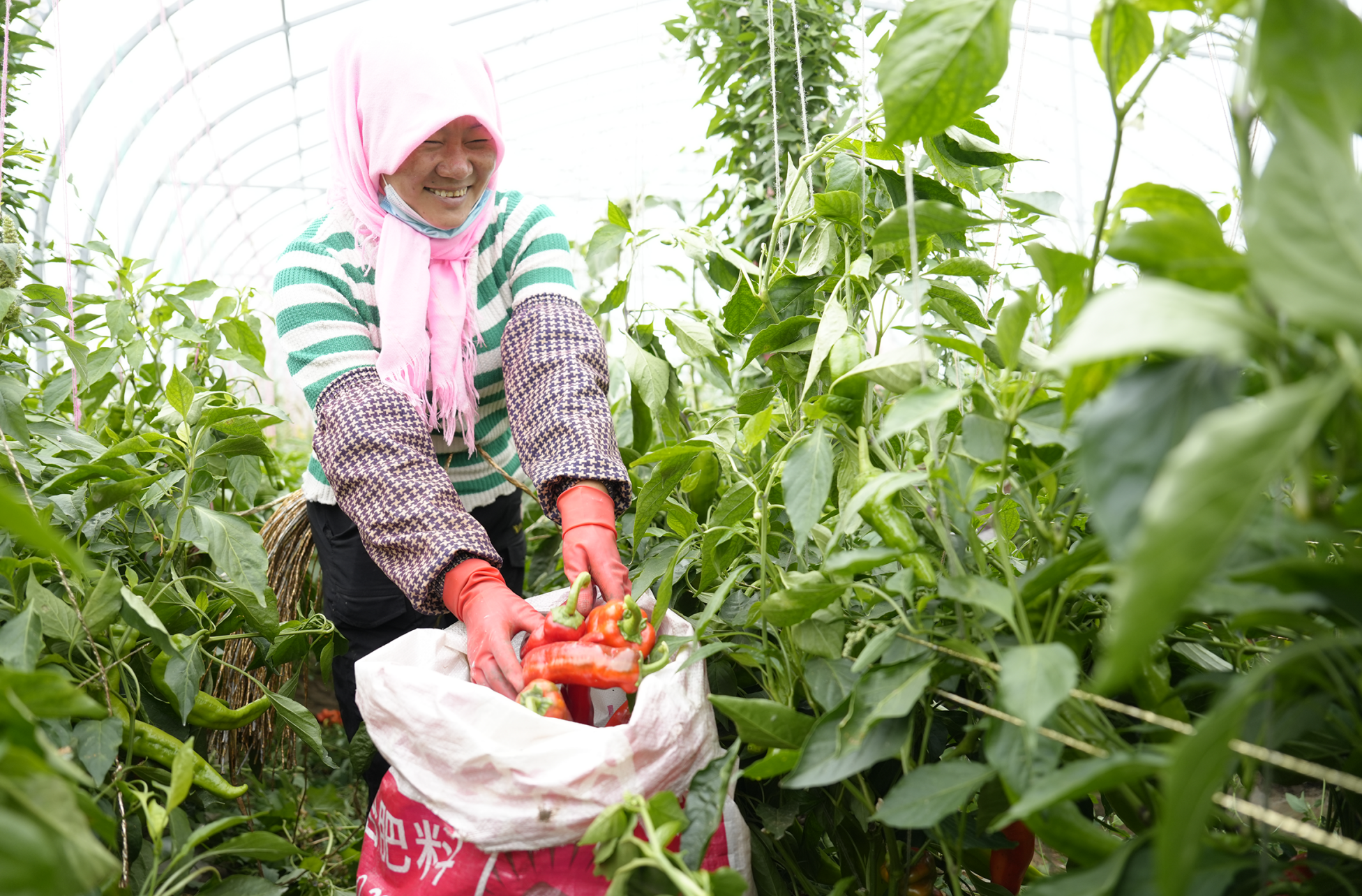 隆德縣聯(lián)財(cái)鎮(zhèn)張樓村種植基地,農(nóng)戶正在采摘辣椒。 韓春波/攝