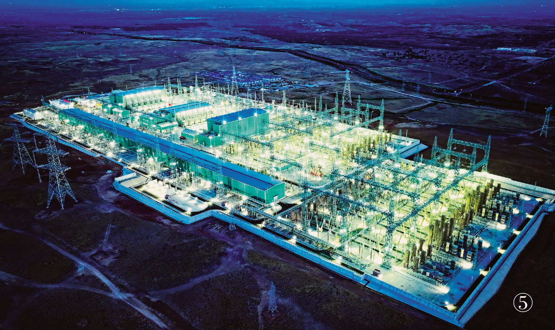 寧夏—湖南±800千伏特高壓直流輸電工程是我國首個(gè)“沙戈荒”風(fēng)光電基地外送電特高壓工程,起于寧夏中寧換流站落點(diǎn)于湖南衡陽換流站,輸電距離達(dá)1616公里,每年可向湖南輸送電量超360億千瓦時(shí)。圖為中寧換流站夜景。 中衛(wèi)市委宣傳部供圖