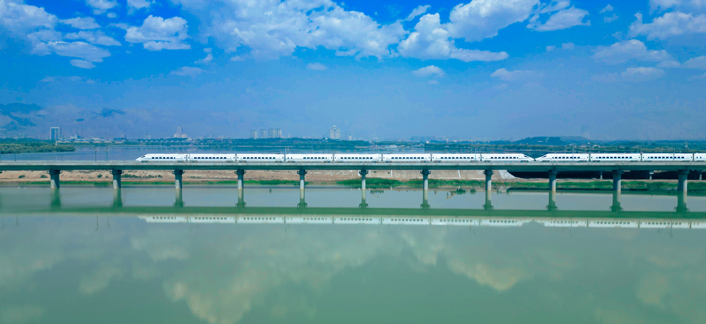 2024年10月1日,包銀高鐵惠農(nóng)至銀川段正式開通運(yùn)營,與銀西高鐵、銀蘭高鐵實(shí)現(xiàn)大連通,石嘴山市接入全國高鐵網(wǎng),標(biāo)志著寧夏貫通南北高鐵通道邁出關(guān)鍵一步,綜合交通運(yùn)輸體系建設(shè)取得重大進(jìn)展。圖為包銀高鐵行駛在石嘴山市星海湖畔。 王喜棟/攝