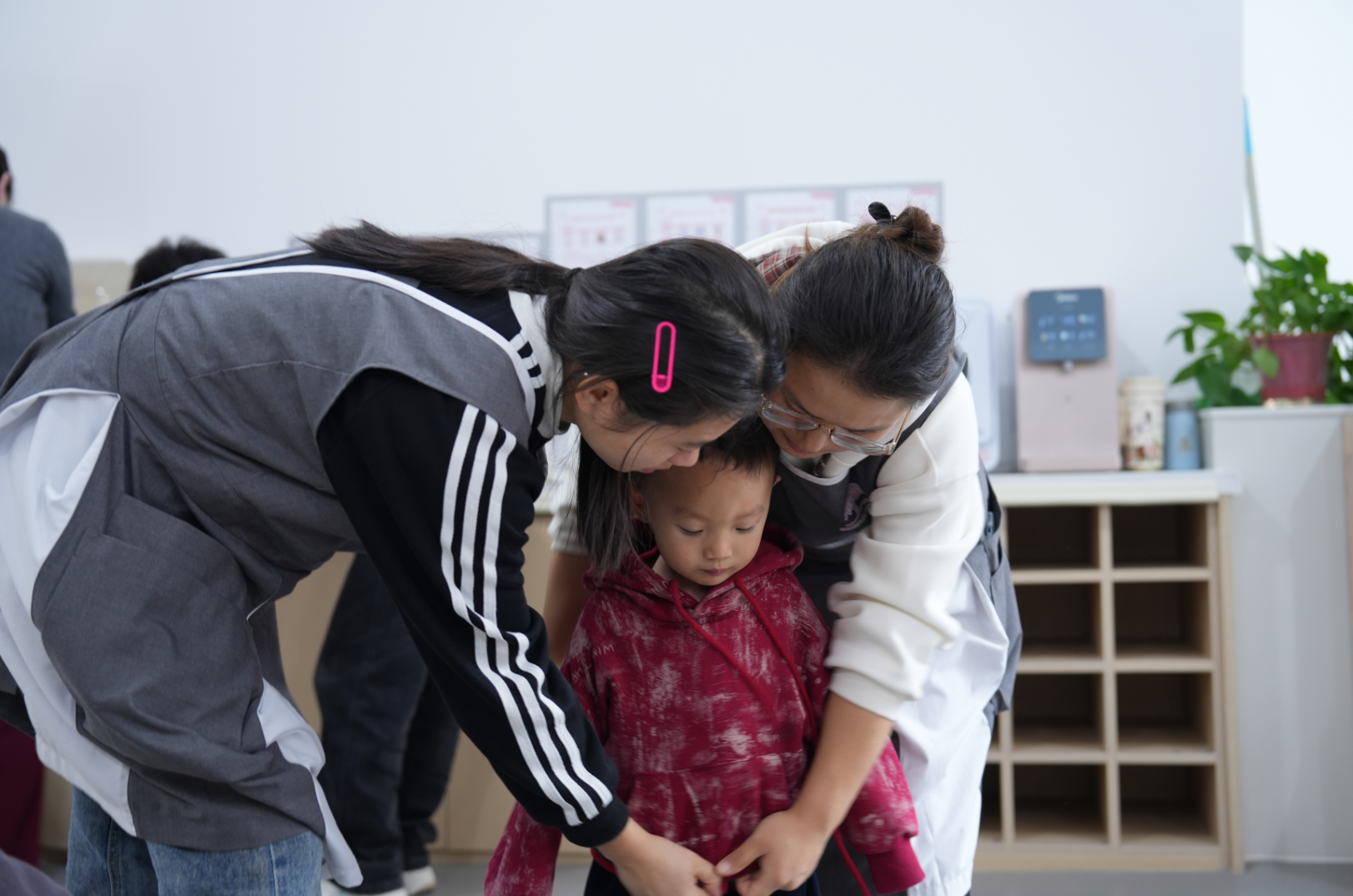 銀川市金鳳區(qū)寶湖華府托育園內(nèi),托育師正耐心細(xì)致地為金瑛的孩子整理衣物?!●R馳/攝