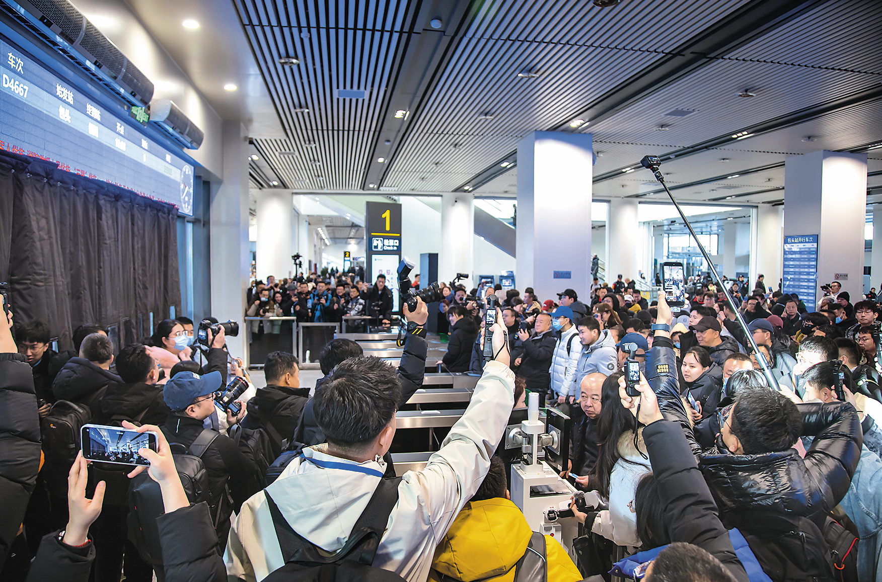乘坐包銀高鐵首發(fā)列車的乘客正在準備檢票進站。 宋佳龍/攝