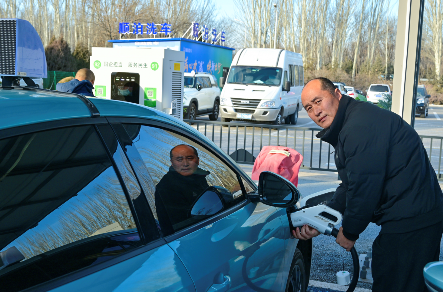 銀川市持續(xù)推進(jìn)新能源汽車充電基礎(chǔ)設(shè)施建設(shè)、安全管理與服務(wù)提升,逐步構(gòu)建起覆蓋城鄉(xiāng)、智能高效的充電服務(wù)體系。圖為出租車司機(jī)在銀川國(guó)際會(huì)展中心光儲(chǔ)超充站內(nèi)為車輛充電。 閆院平/攝