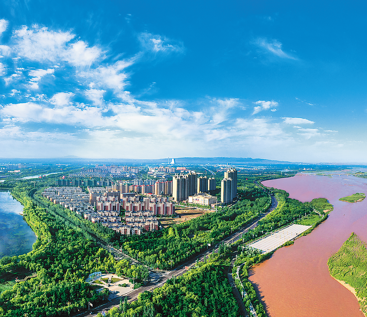 空中俯瞰,吳忠市猶如一顆璀璨的明珠鑲嵌在黃河之畔。 吳忠市政府辦公室供圖