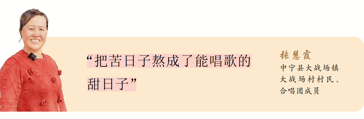 中寧縣大戰(zhàn)場鎮(zhèn)農(nóng)民合唱團(tuán)用質(zhì)樸鄉(xiāng)音與真摯情感,將移民記憶和奮斗精神融入歌聲。前來聽歌的鄉(xiāng)親們被深深打動(dòng)。 中衛(wèi)市委宣傳部供圖